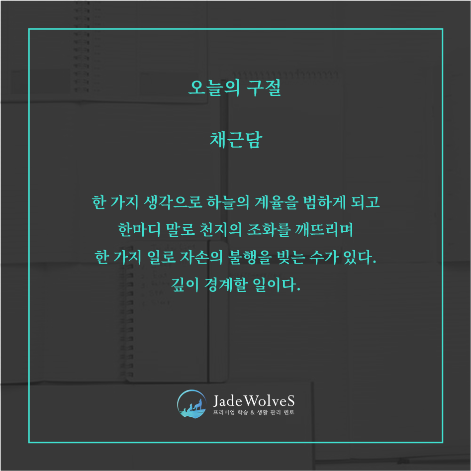 오늘 소개한 채근담의 한 구절은 생각 그리고 말과 행동을 얼마나 경계해야 하는지 전달합니다. 말하기 전에 항상 신중하게 생각하고 사랑과 이해를 담아서 행동해야 합니다.