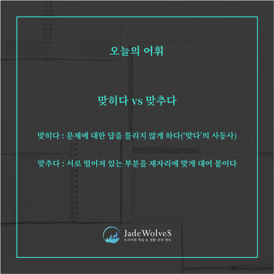 청랑의 어휘력 높이기 : 오늘은 '맞히다'와 '맞추다'의 차이점에 대해 알아보겠습니다.