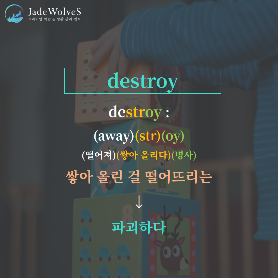 "struct/stru : 짓다, 쌓아 올리다"라는 의미로 동사를 나타냅니다.
