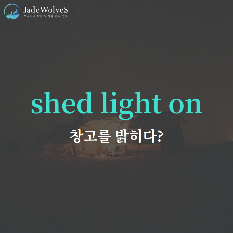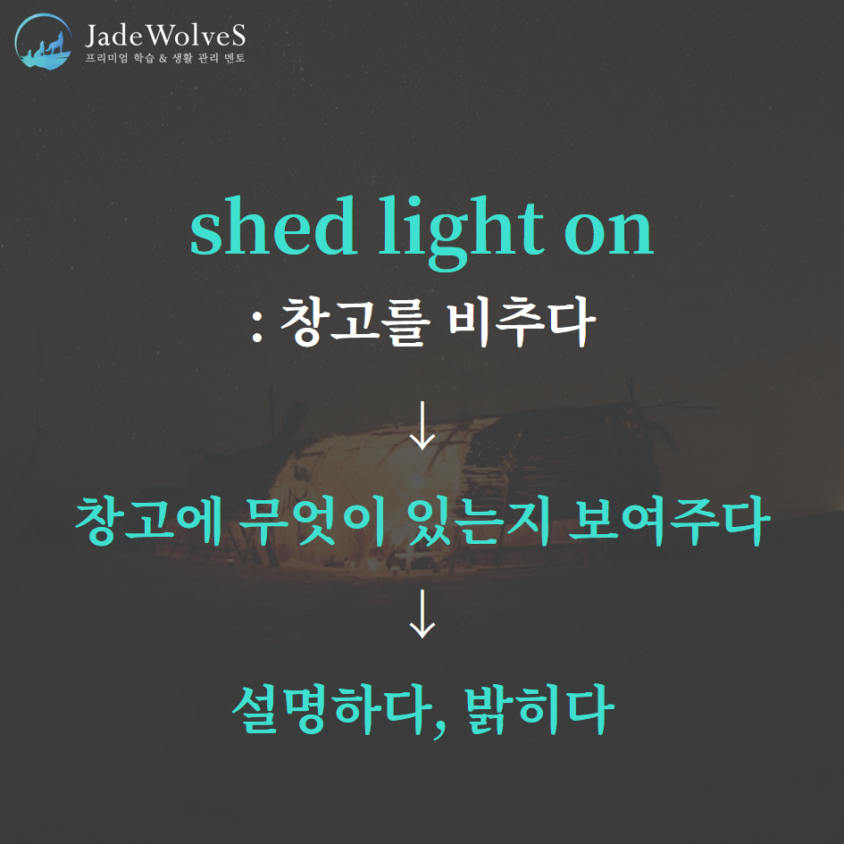 2) shed light on : "창고를 비추다"라고 해서 "설명하다, 밝히다"라는 의미로 사용됩니다.