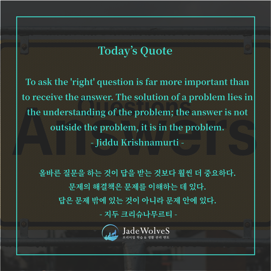 문제를 깊이 이해하고 올바른 질문을 할 때 그 안에서 답을 찾을 수 있습니다.