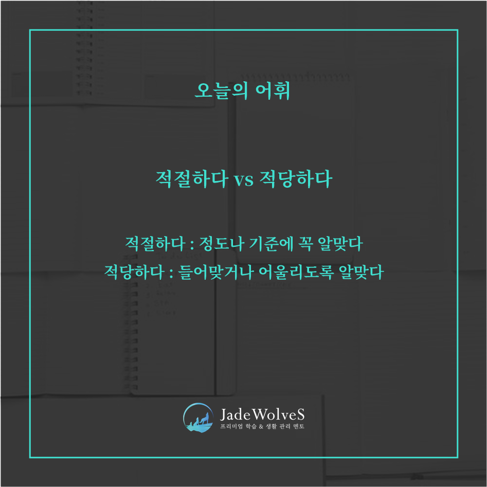 오늘은 '적절하다'와 '적당하다'의 차이를 알아보겠습니다.