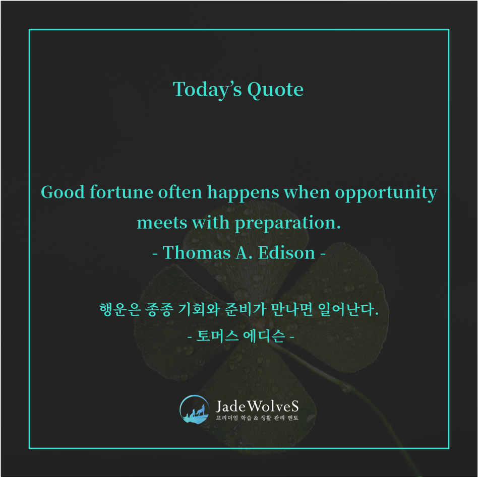 준비된 상태로 기회를 맞이하는 것이 바로 행운입니다.