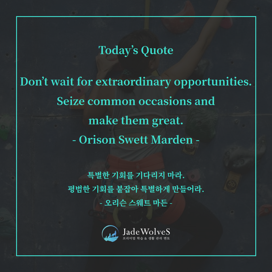 어떤 특별한 일과 기회가 올 거라고 기다리지 마세요.