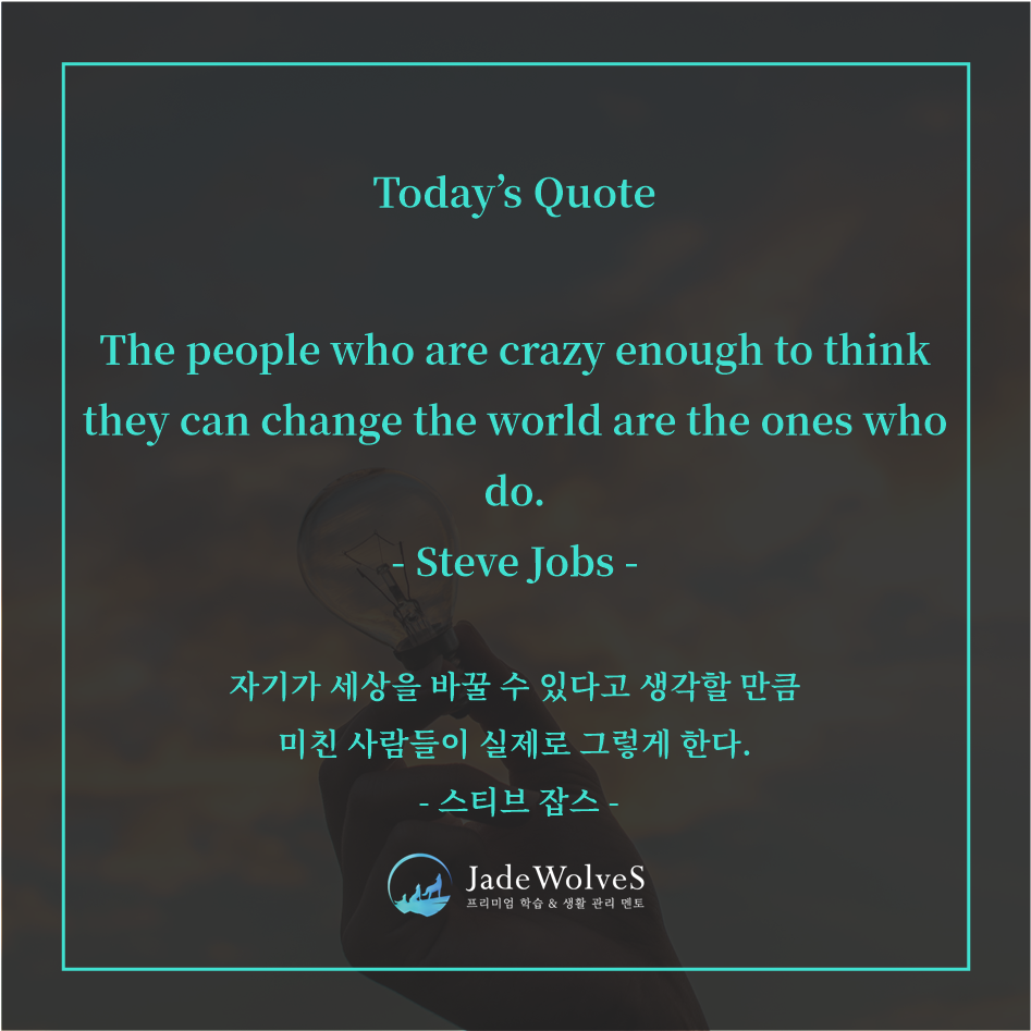 자기 일에 미친 사람이 세상을 바꿉니다.