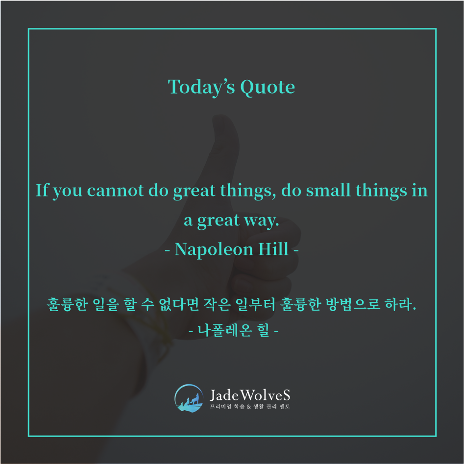 위대한 일을 하고 싶다면 먼저 작은 일부터 최선을 다해야 합니다.