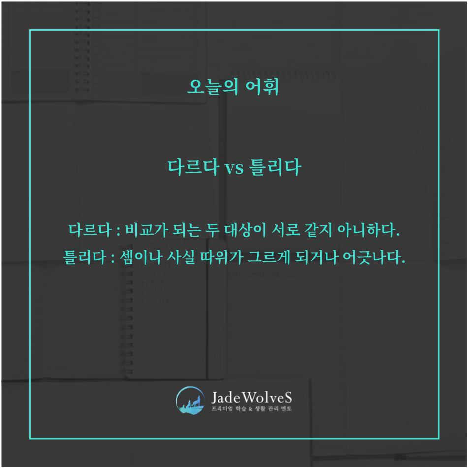 청랑의 어휘력 높이기 : 오늘은 '다르다'와 '틀리다'의 차이점에 대해 알아보려고 합니다.