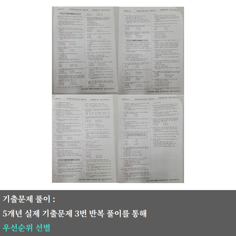 필기시험은 시험에 빈출 되는 중심 내용을 찾기 위해 기출문제 반복 풀이 미션과