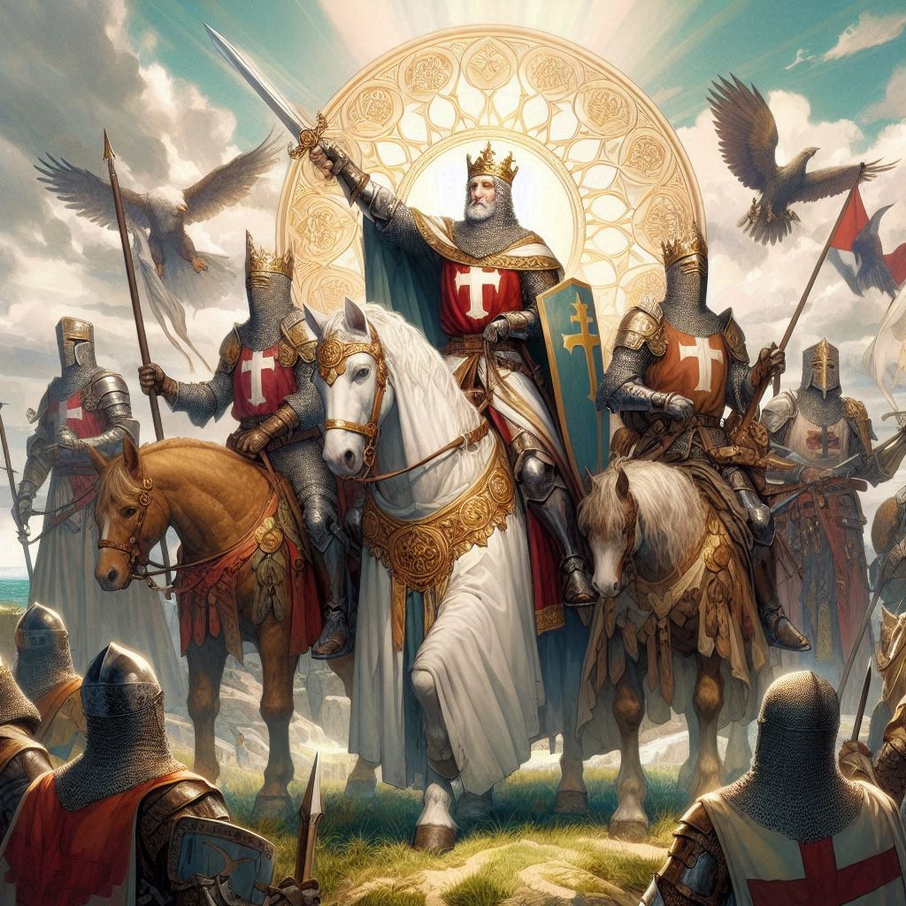King Arthur is the legendary king of England. As a young boy, he pulled a magical sword from a stone, proclaiming him the rightful king. With the support of his valiant knights, like Sir Lancelot and Sir Galahad, he embarked on numerous thrilling quests, battling evil sorcerers, dragons, and giants. Arthur also had a wise advisor, the wizard Merlin, who guided him in his decisions.