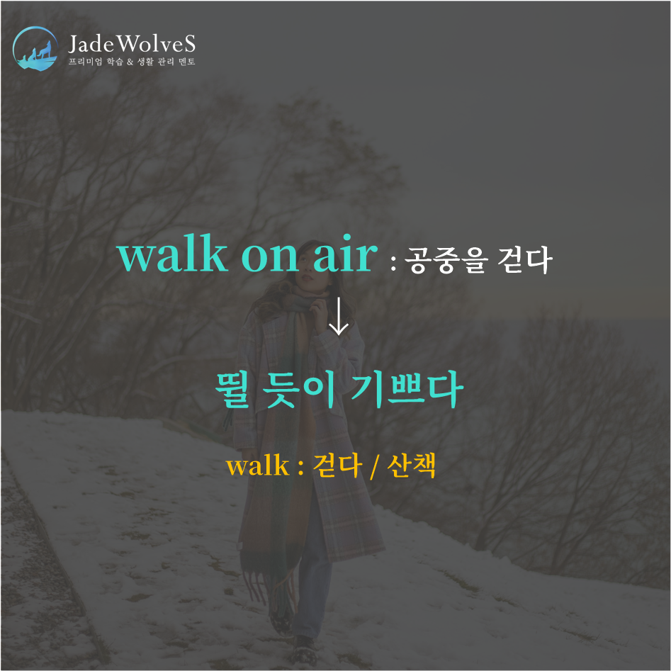 2) walk on air : "공중을 거다"라고 해서 "뛸 듯이 기쁘다"라는 의미로 사용됩니다.