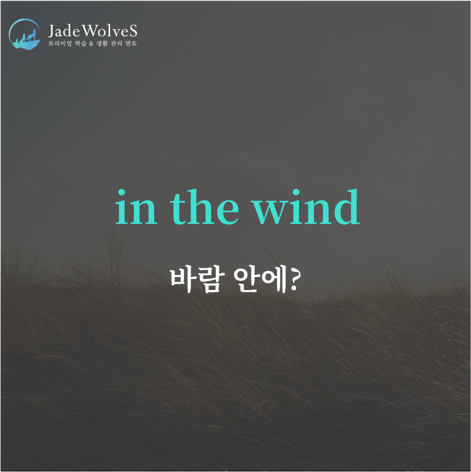1) in the wind : "바람 속에 있는"이라고 해서 "풍문이 있는"이라는 의미로 사용됩니다.
