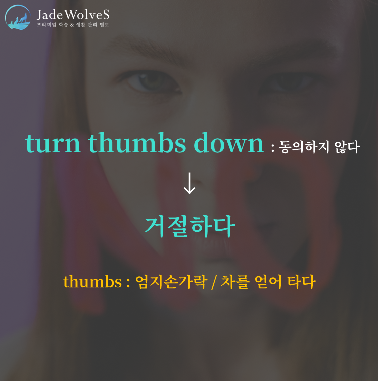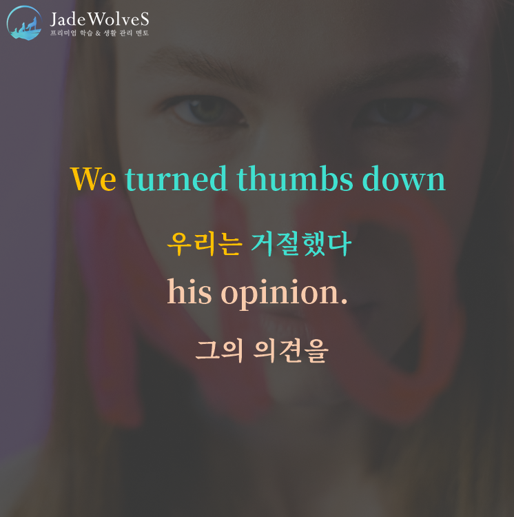 1) turn thumbs down : "동의하지 않다"라고 해서 "거절하다"라는 의미로 사용됩니다.