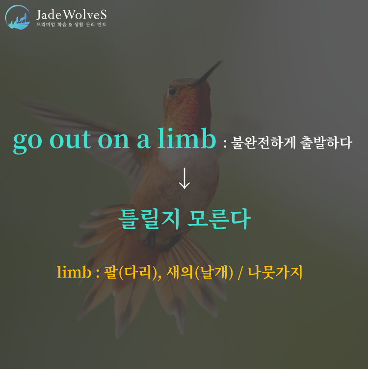 2) go out on a limb : "불완전하게 출발하다"라고 해서 "틀릴지 모른다"라는 의미로 사용됩니다.