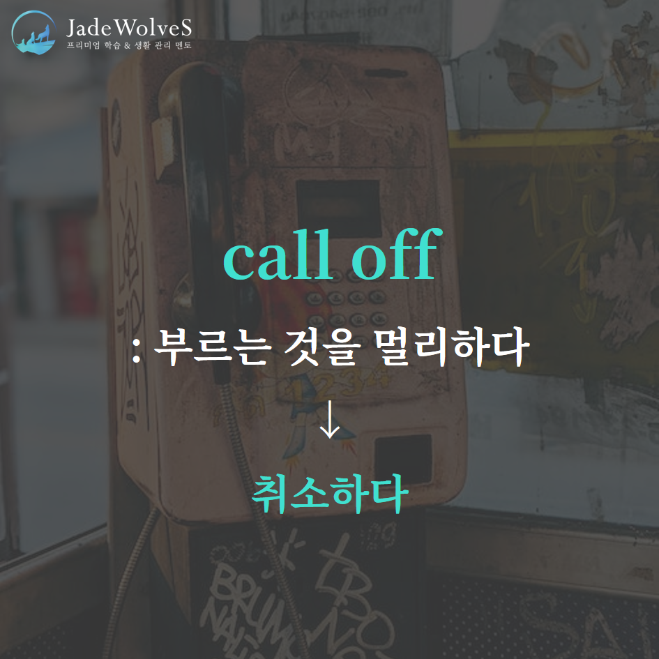 1) call off : "부르는 것을 멀리하다"라고 해서 "취소하다"라는 의미로 사용됩니다.