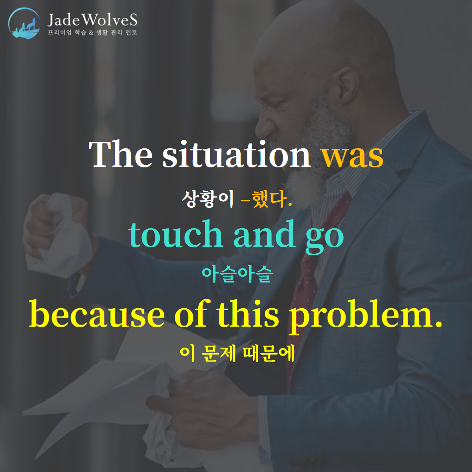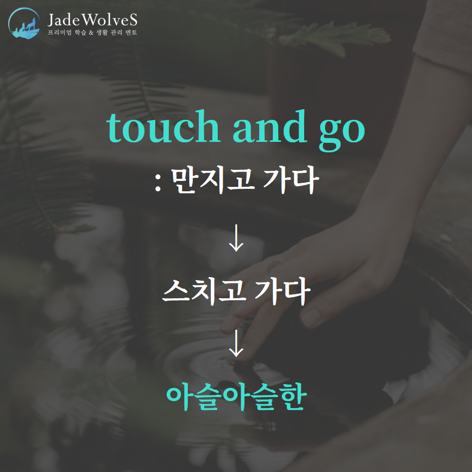 2) touch and go : "만지고 가다"라고 해서 "아슬아슬한"이라는 의미로 사용됩니다.