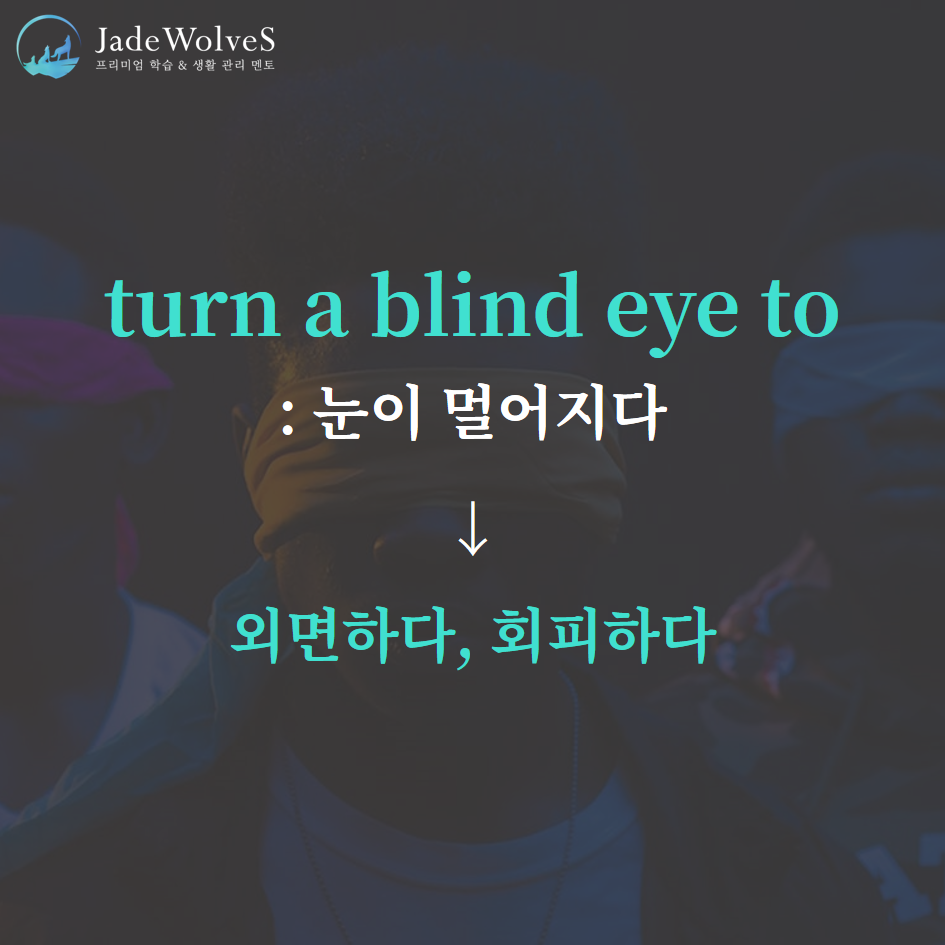 1) turn a blind eye to : "눈이 멀어지다"라고 해서 "외면하다, 회피하다"라는 의미로 사용됩니다.