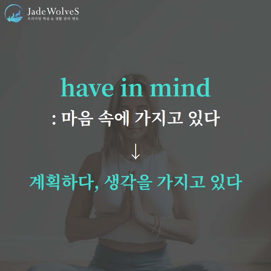 1) have in mind : "마음 속에 가지고 있다"라고 해서 "계획하다, 생각을 가지고 있다"라는 의미로 사용됩니다.