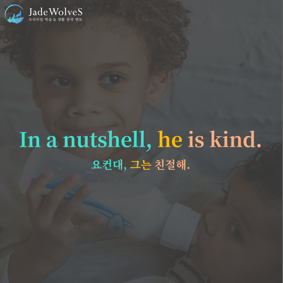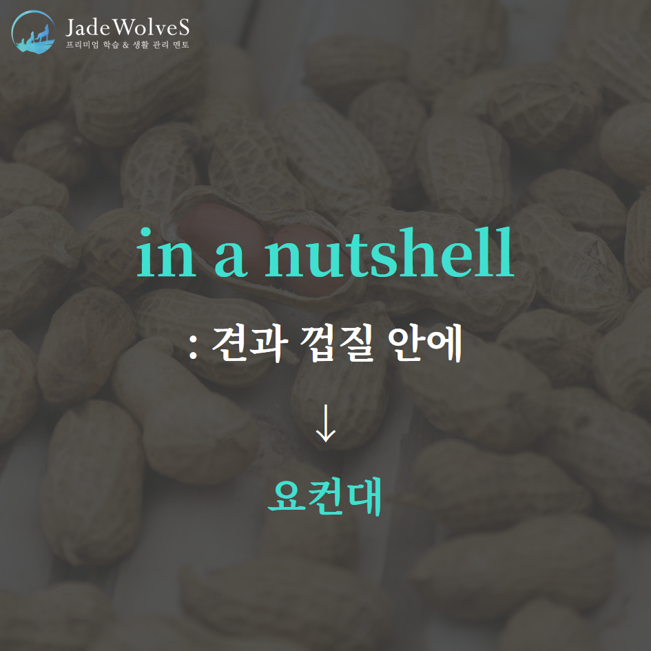 1) in a nutshell : "견과 껍질 안에"라고 해서 "요컨대"라는 의미로 사용됩니다.