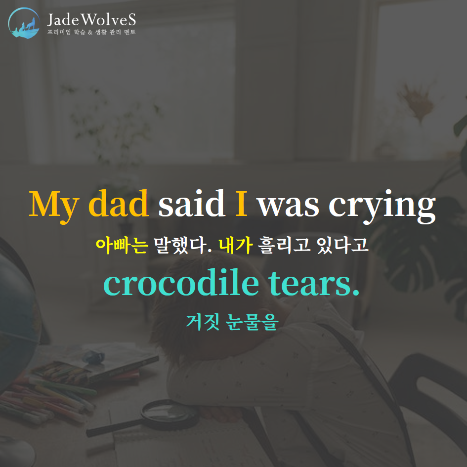 2) crocodile tears : "악어의 눈물"라고 해서 "거짓 눈물"이라는 의미로 사용됩니다.