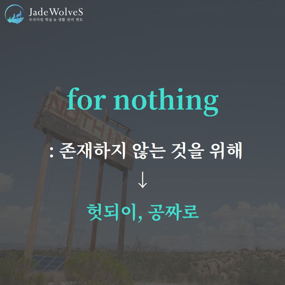 1) for nothing : "존재하지 않는 것을 위해"라고 해서 "헛되이, 공짜로"라는 의미로 사용됩니다.