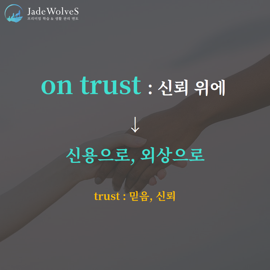 1) on trust : "신뢰 위에"라고 해서 "신용으로, 외상으로"라는 의미로 사용됩니다.