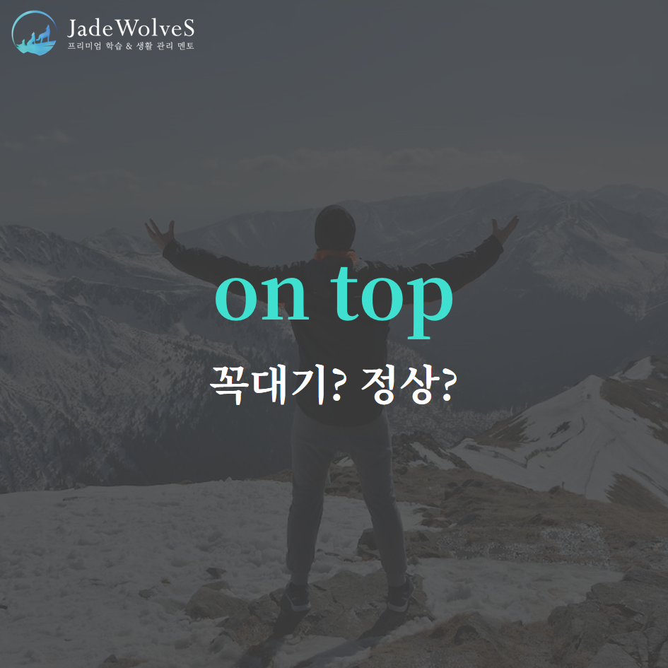 2) on top : "정상 위에"라고 해서 "일등으로, 성공한"이라는 의미로 사용됩니다.