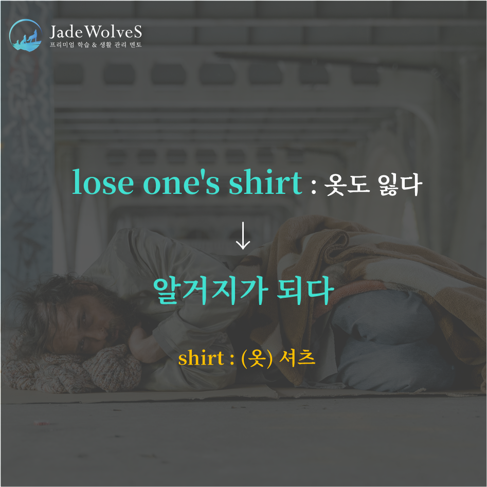 1) lose one's shirt : "옷도 잃다"라고 해서 "알거지가 되다"라는 의미로 사용됩니다.