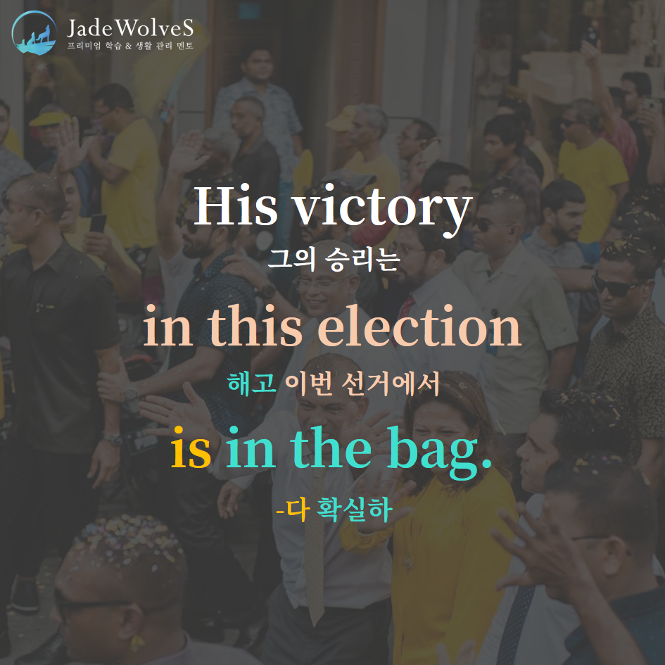 1) in the bag : "가방 안에"라고 해서 "확실한, 확정된"이라는 의미로 사용됩니다.