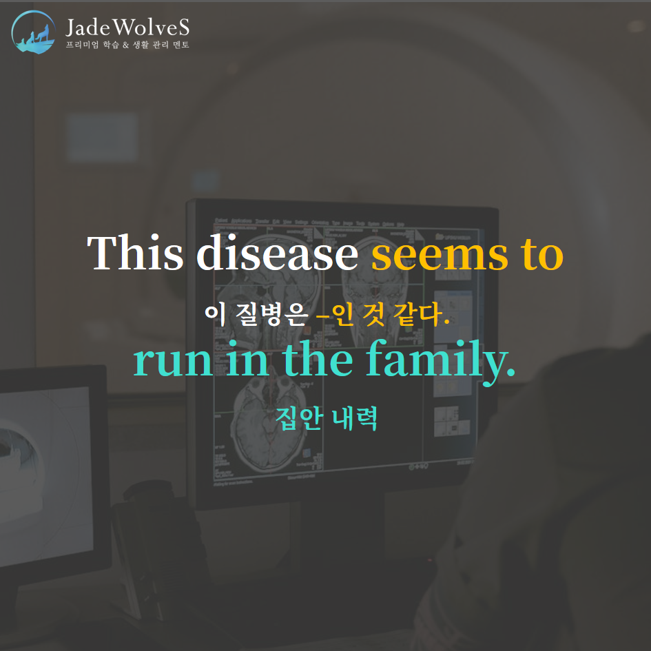 2) run in the family : "가족 속에 이어지다"라고 해서 "집안 내력이다"라는 의미로 사용됩니다.