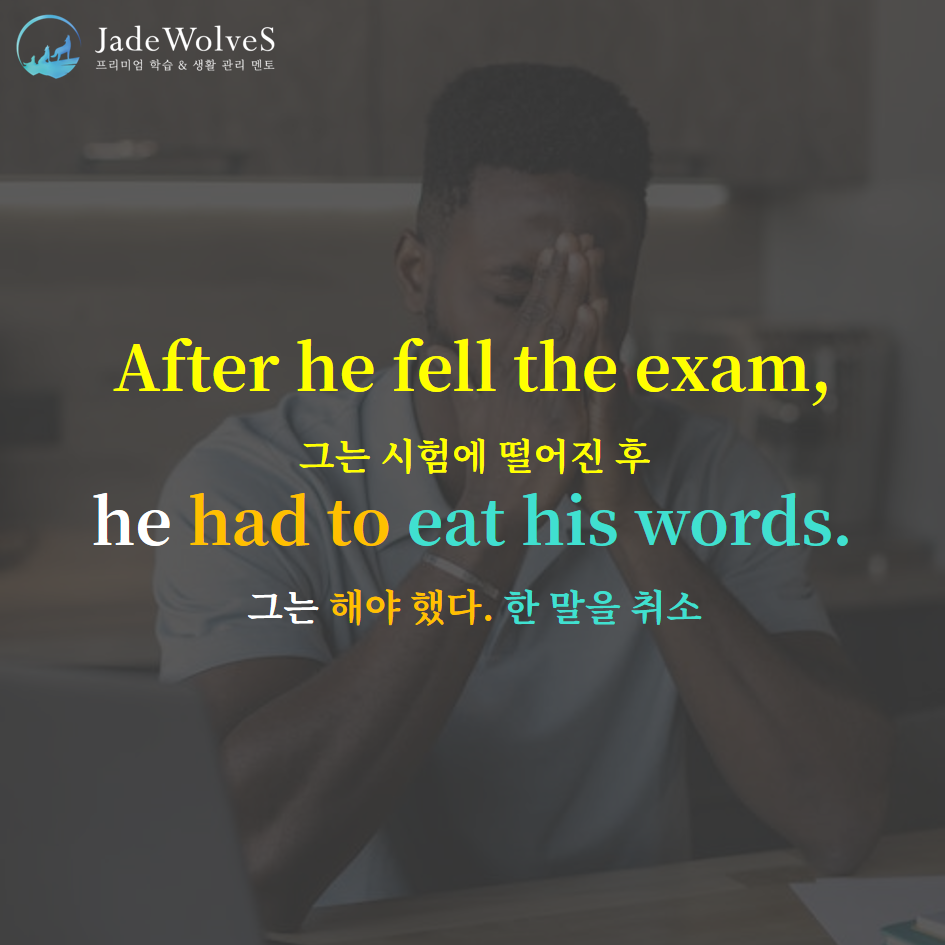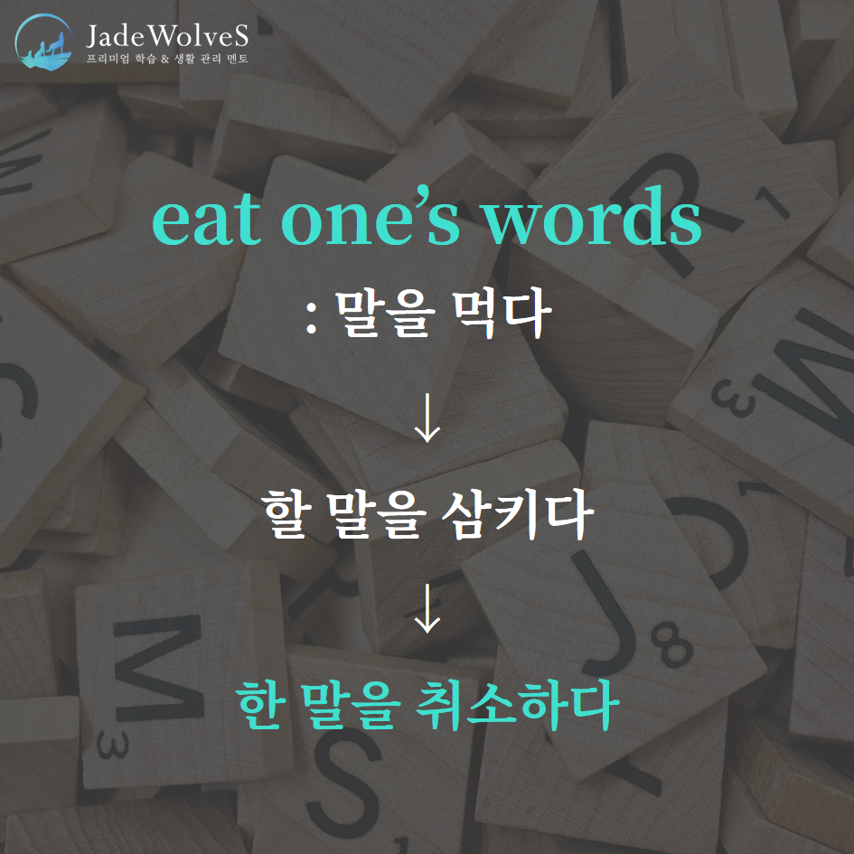 1) eat one's words : "말을 먹다"라고 해서 "한 말을 취소하다"라는 의미로 사용됩니다.