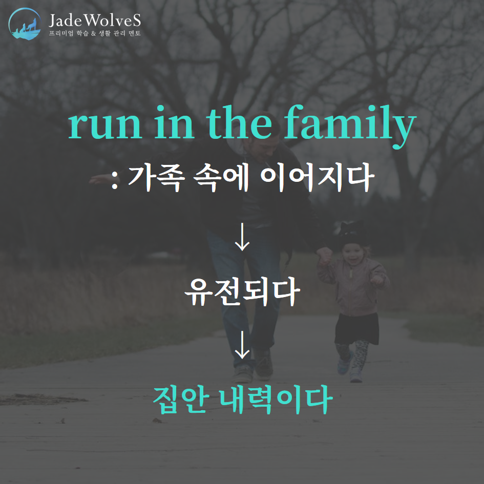 2) run in the family : "가족 속에 이어지다"라고 해서 "집안 내력이다"라는 의미로 사용됩니다.