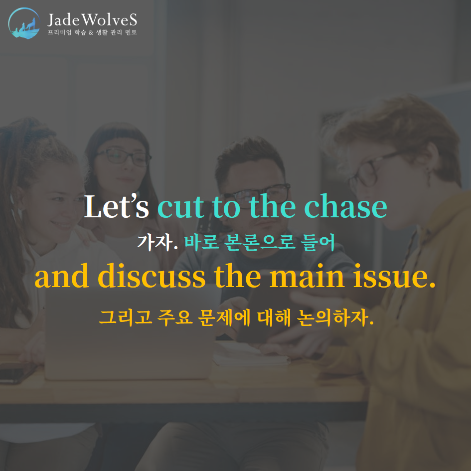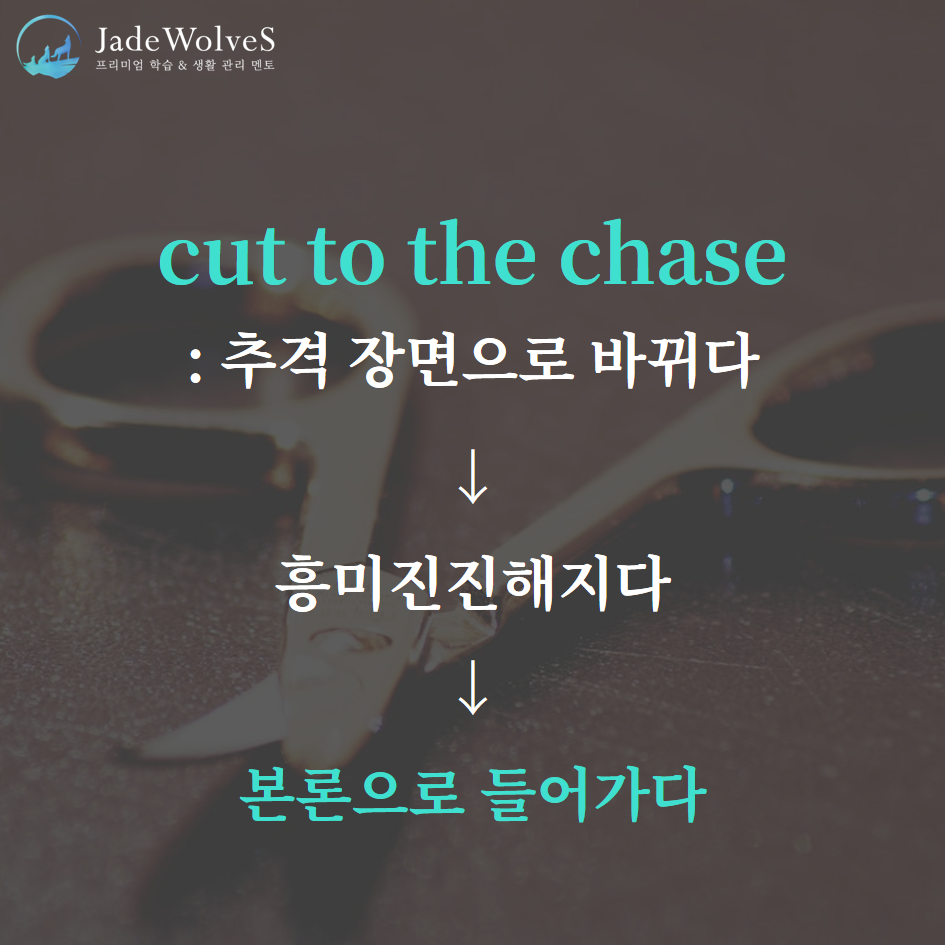 2) cut to the chase : "추격 장면으로 바뀌다"라고 해서 "본론으로 들어가다"라는 의미로 사용됩니다.