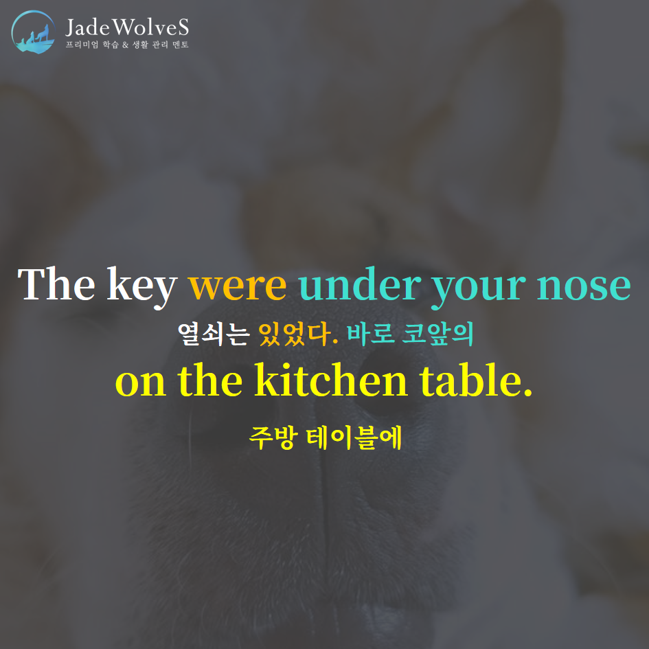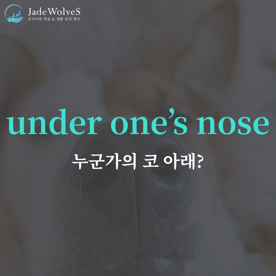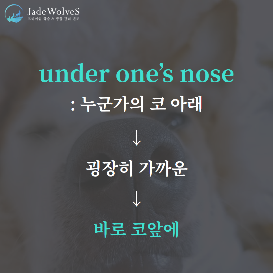 1) under one's nose : "누군가의 코 아래"라고 해서 "바로 코앞에"라는 의미로 사용됩니다.