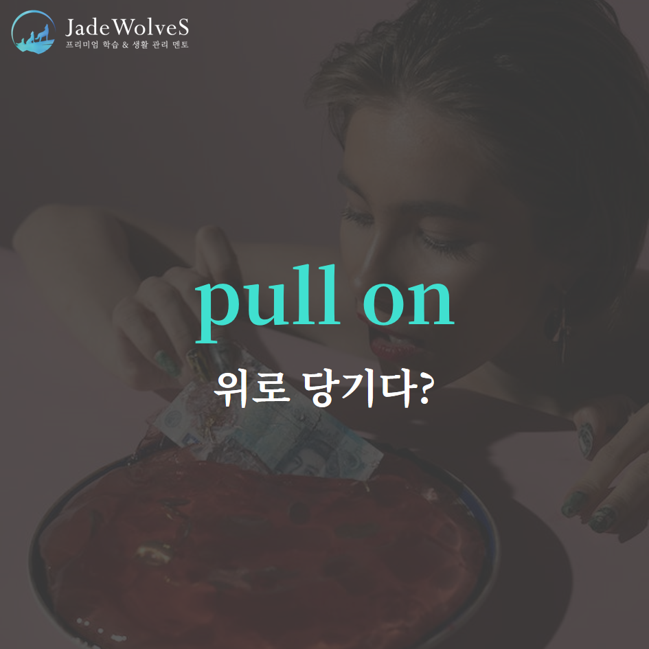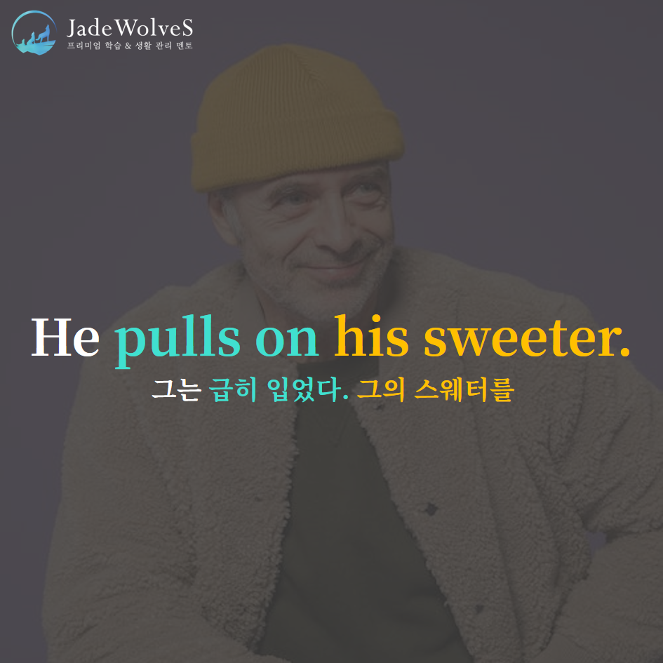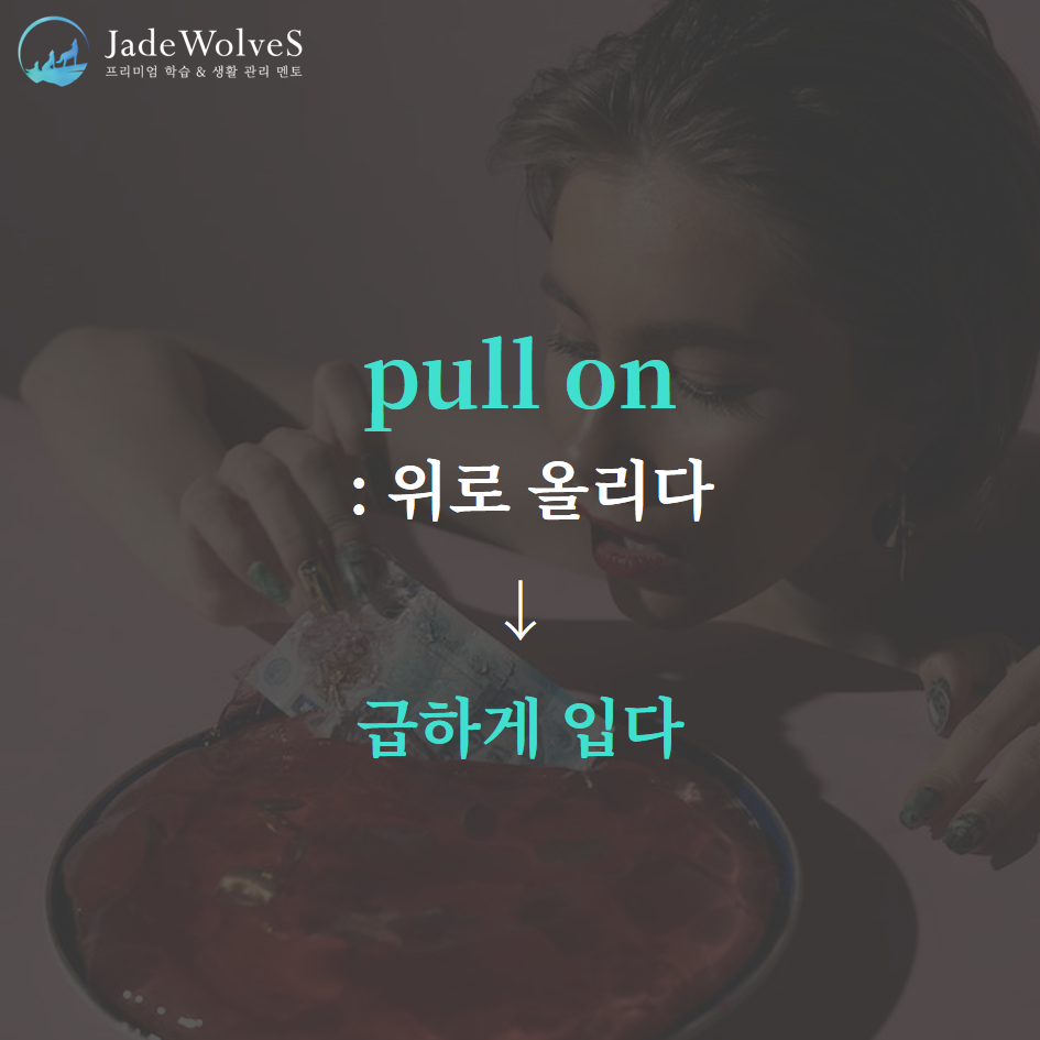 2) pull on : "위로 올리다"라고 해서 "급하게 입다"라는 의미로 사용됩니다.