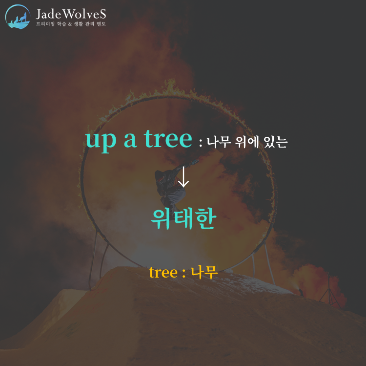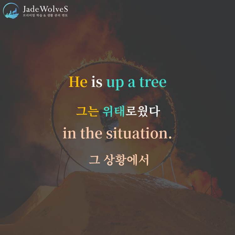 1) up a tree : "나무 위에 있는"이라고 해서 "위태한"이라는 의미로 사용됩니다.