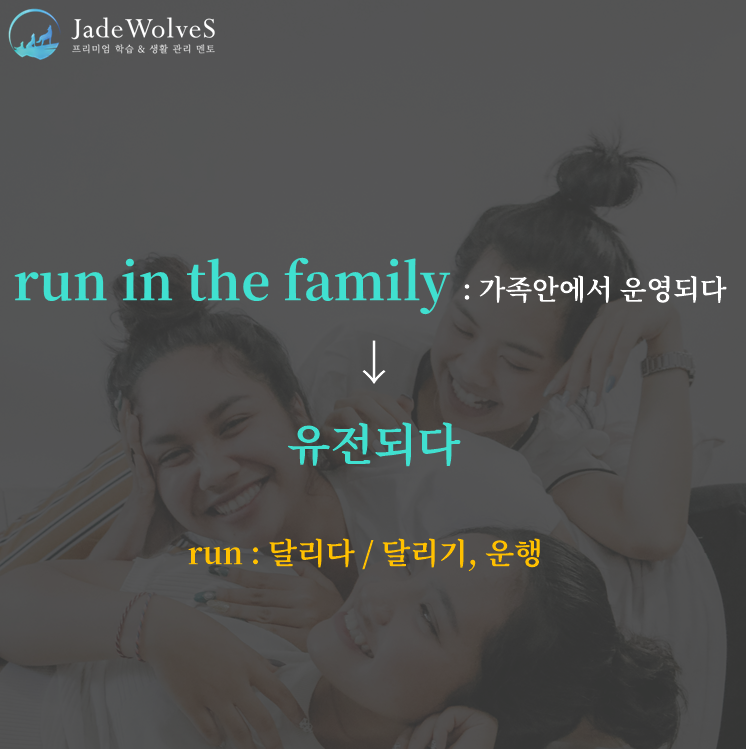 2) run in the family : "가족 안에서 운영되다"라고 해서 "유전되다"라는 의미로 사용됩니다.