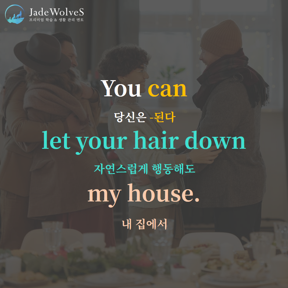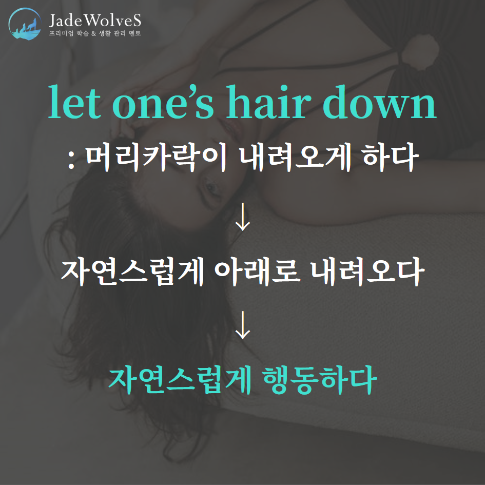 1) let one's hair down : "머리카락이 내려오게 하다"라고 해서 "자연스럽게 행동하다"라는 의미로 사용됩니다.