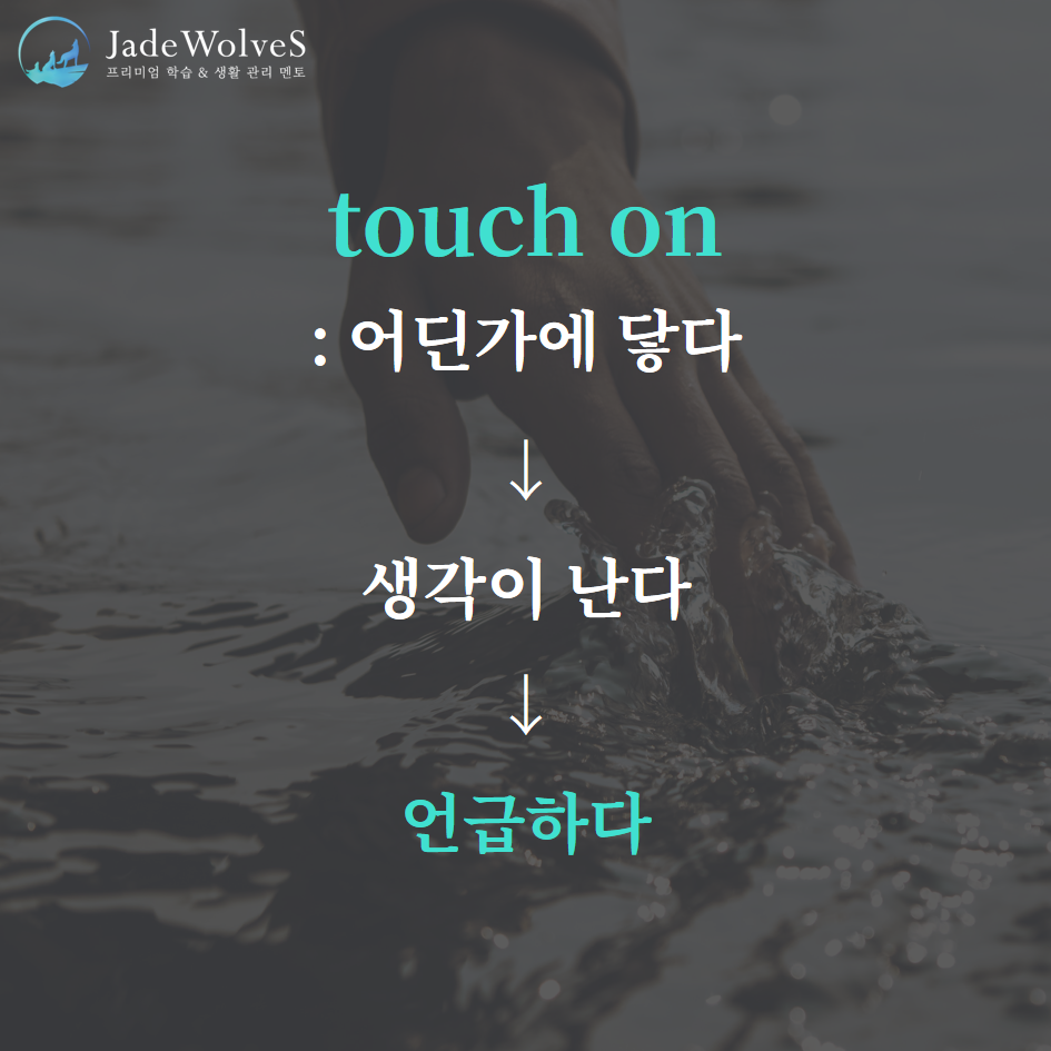 2) touch on : "어딘가에 닫다"라고 해서 "언급하다"라는 의미로 사용됩니다.