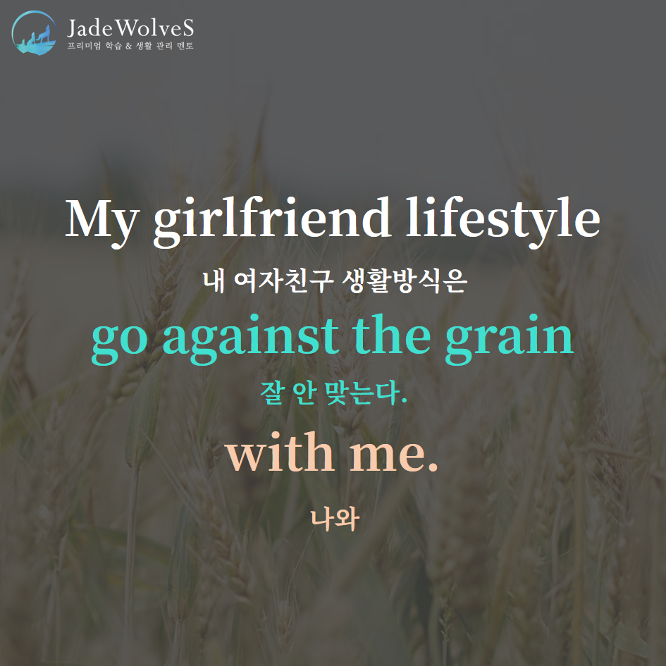 1) go against the grain : "특정 곡물에 저항하다"라고 해서 "잘 안 맞다"라는 의미로 사용됩니다.
