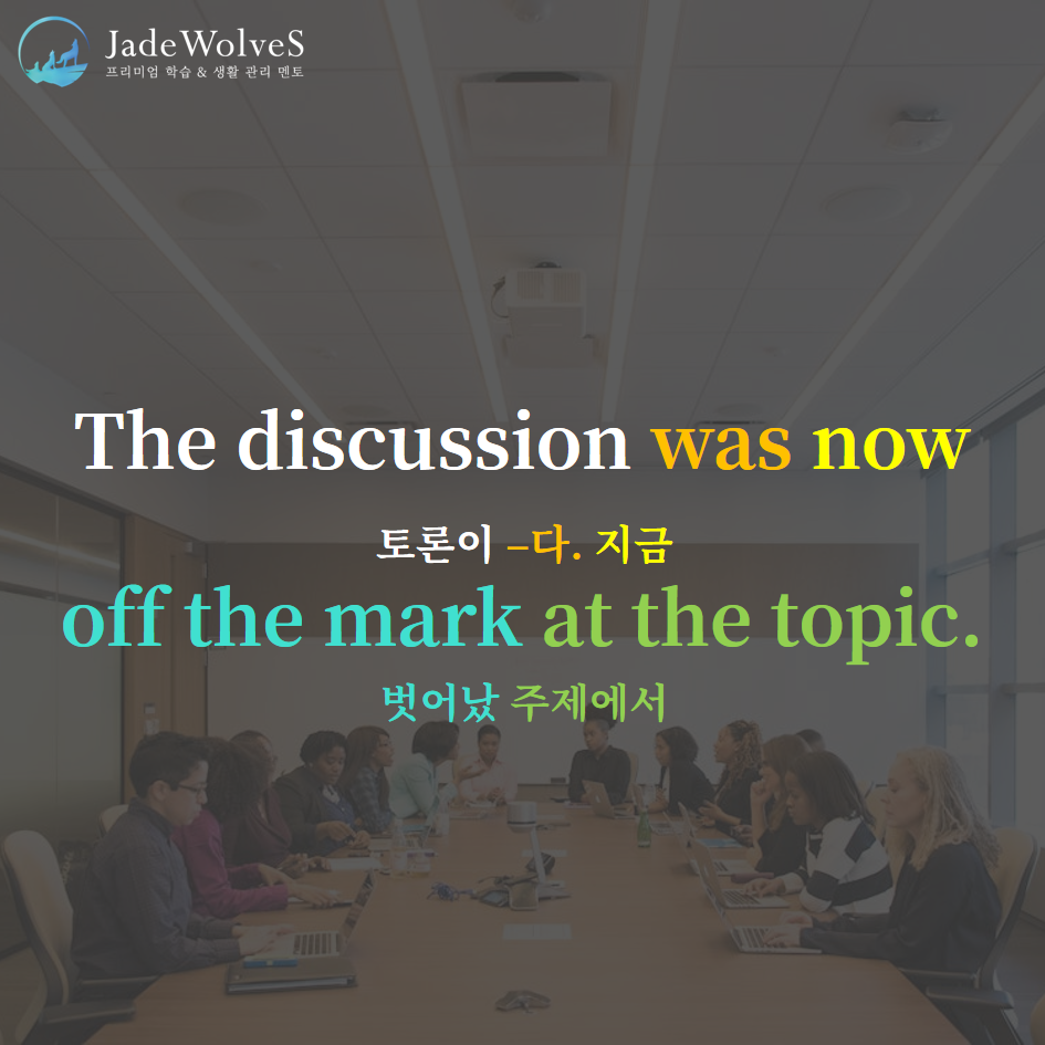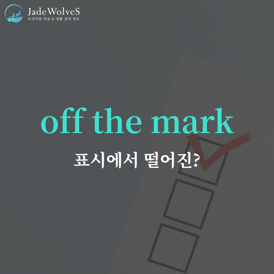 2) off the mark : "표시에서 떨어진"이라고 해서 "정확하지 않은, 벗어난"이라는 의미로 사용됩니다.