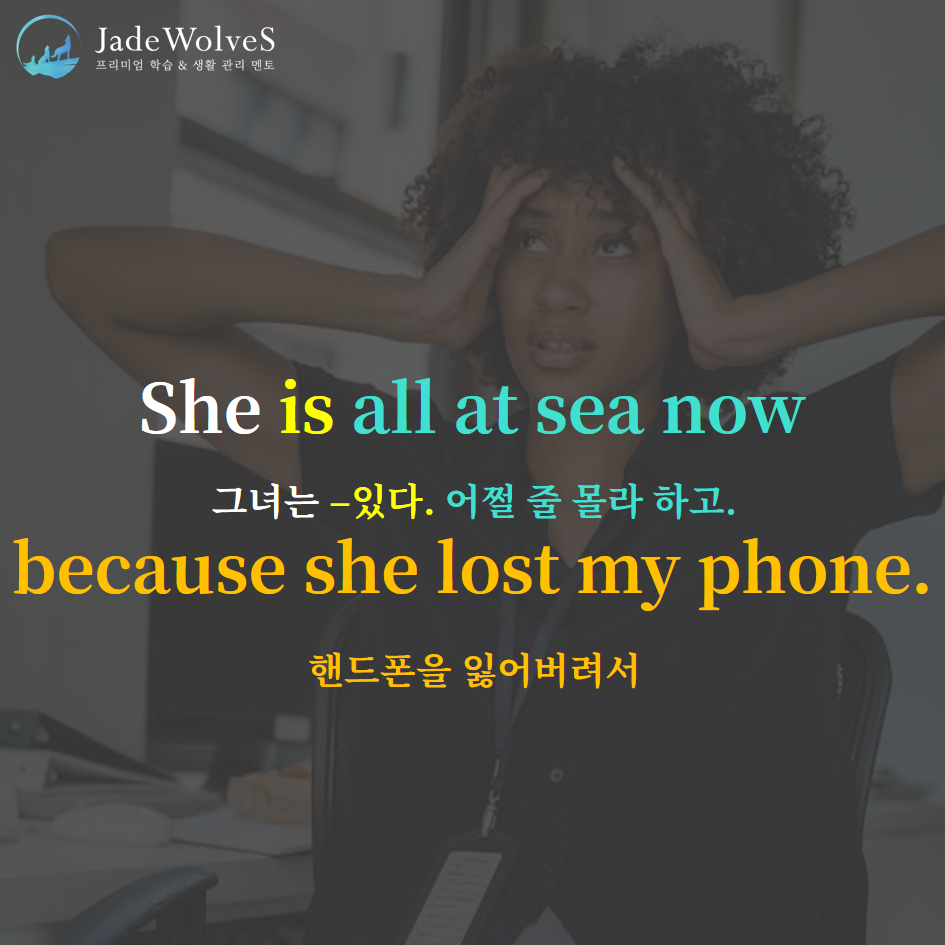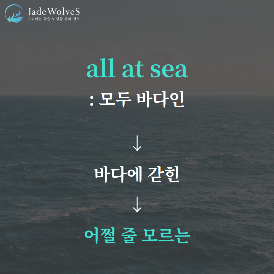 2) all at sea : "모두 바다인"이라고 해서 "어쩔 줄 모르는"이라는 의미로 사용됩니다.
