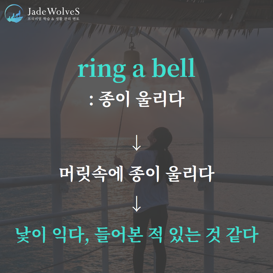 1) ring a bell : "종이 울리다"라고 해서 "낯이 익다, 들어본 적 있는 것 같다"라는 의미로 사용됩니다.