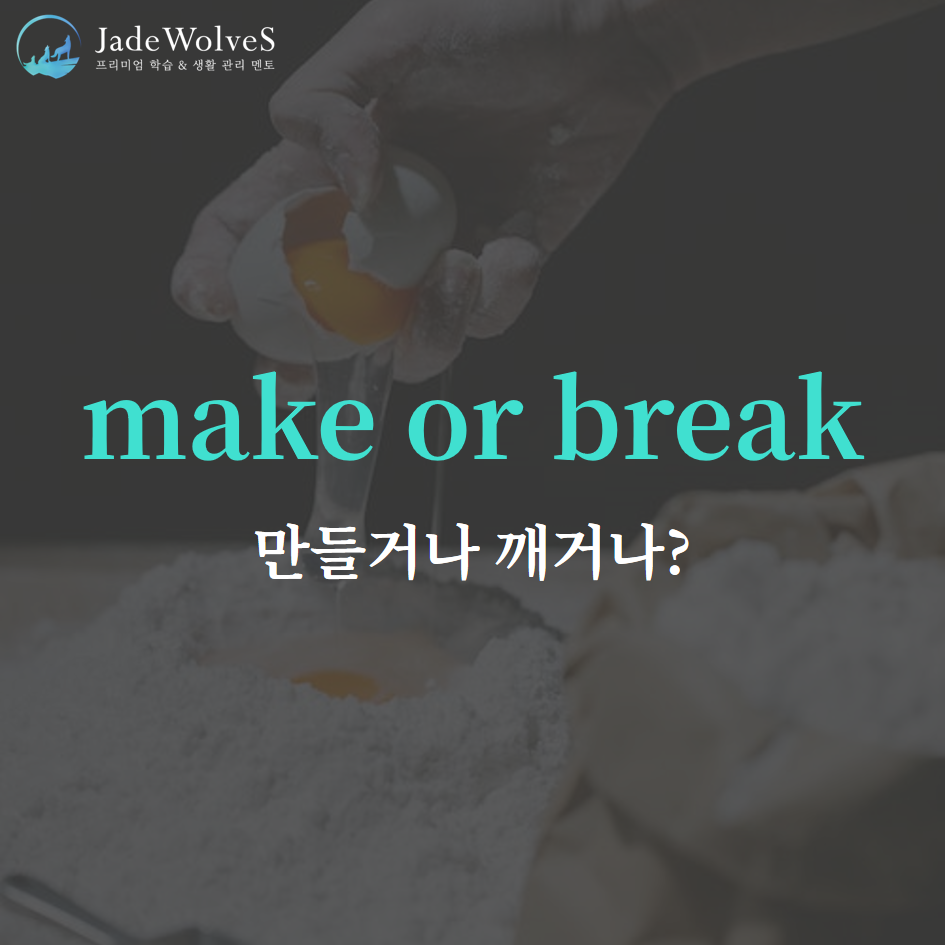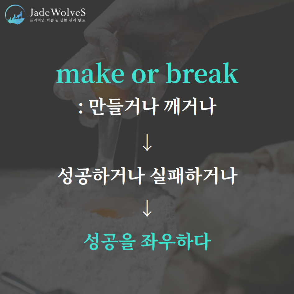 2) make or break : "만들거나 깨거나"라고 해서 "성공을 좌우하다"라는 의미로 사용됩니다.