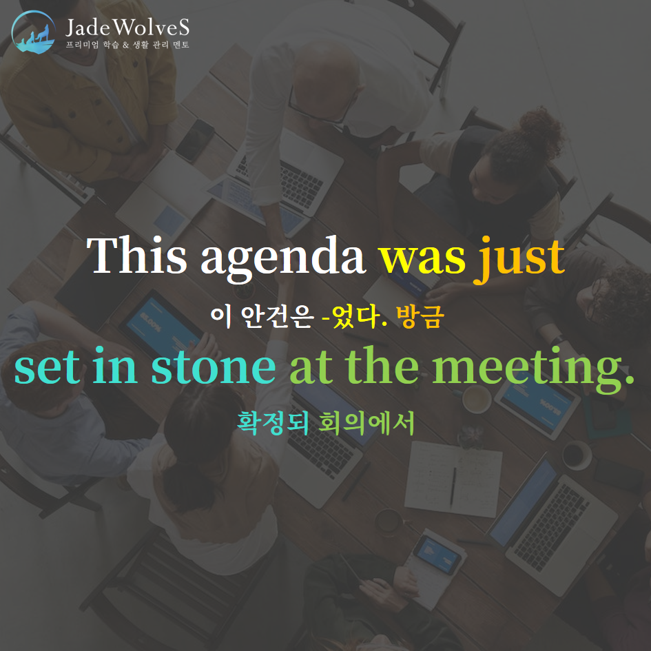 1) set in stone : "돌에 고정하다"라고 해서 "확정되다, 정해지다"라는 의미로 사용됩니다.
