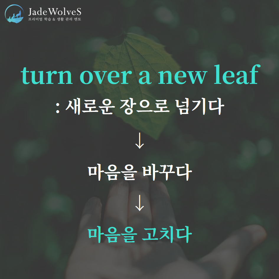 1) turn over a new leaf : "새로운 장으로 넘기다"라고 해서 "마음을 고치다"라는 의미로 사용됩니다.