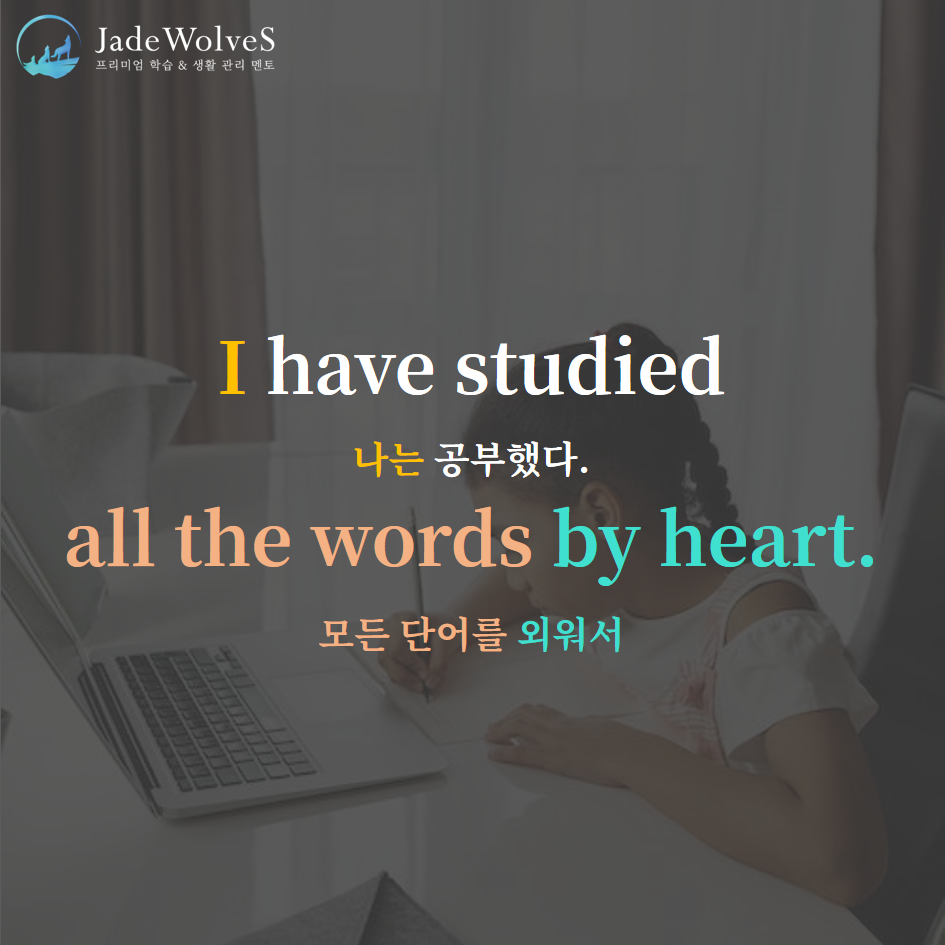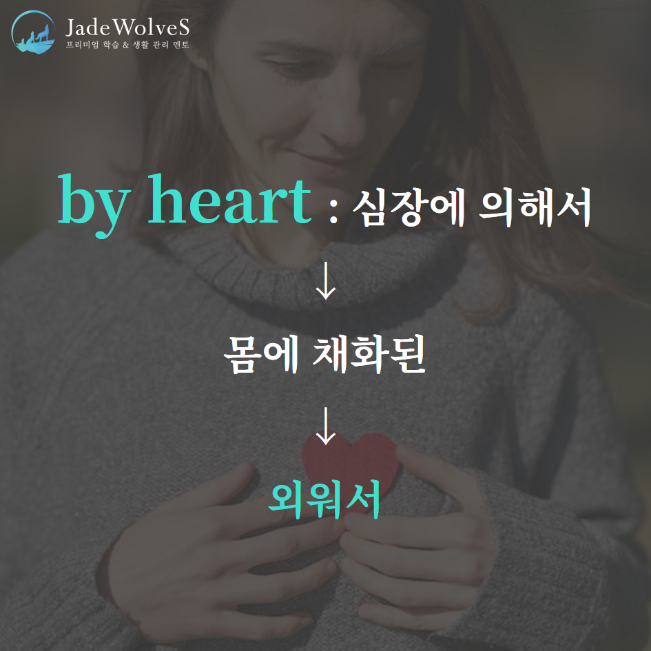 2) by heart : "심장에 의해서 - 몸에 체화된"이라고 해서 "외워서"라는 의미로 사용됩니다.