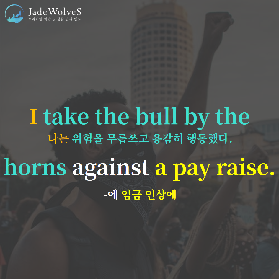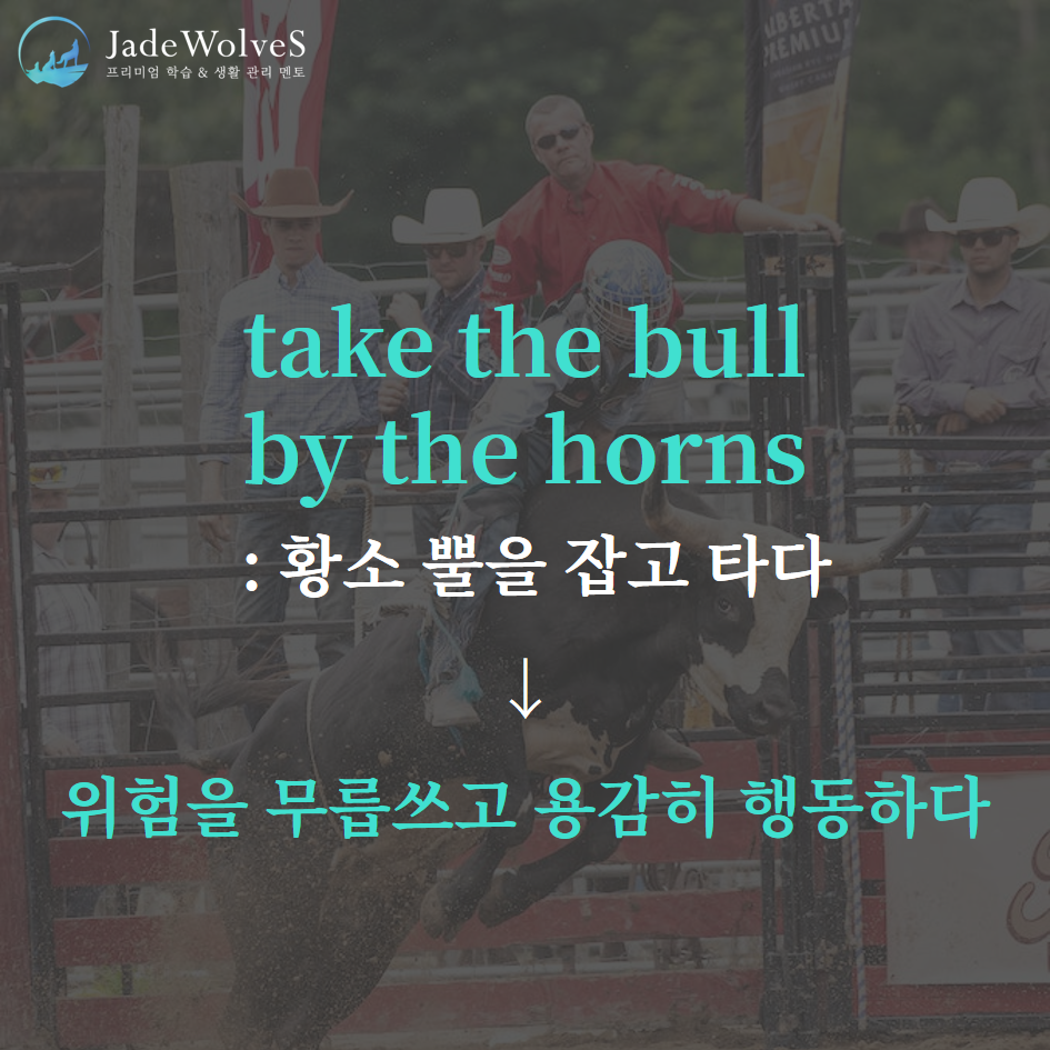 1) take the bull by the horns : "황소 뿔을 잡고 타다"라고 해서 "위험을 무릅쓰고 용감히 행동하다"라는 의미로 사용됩니다.