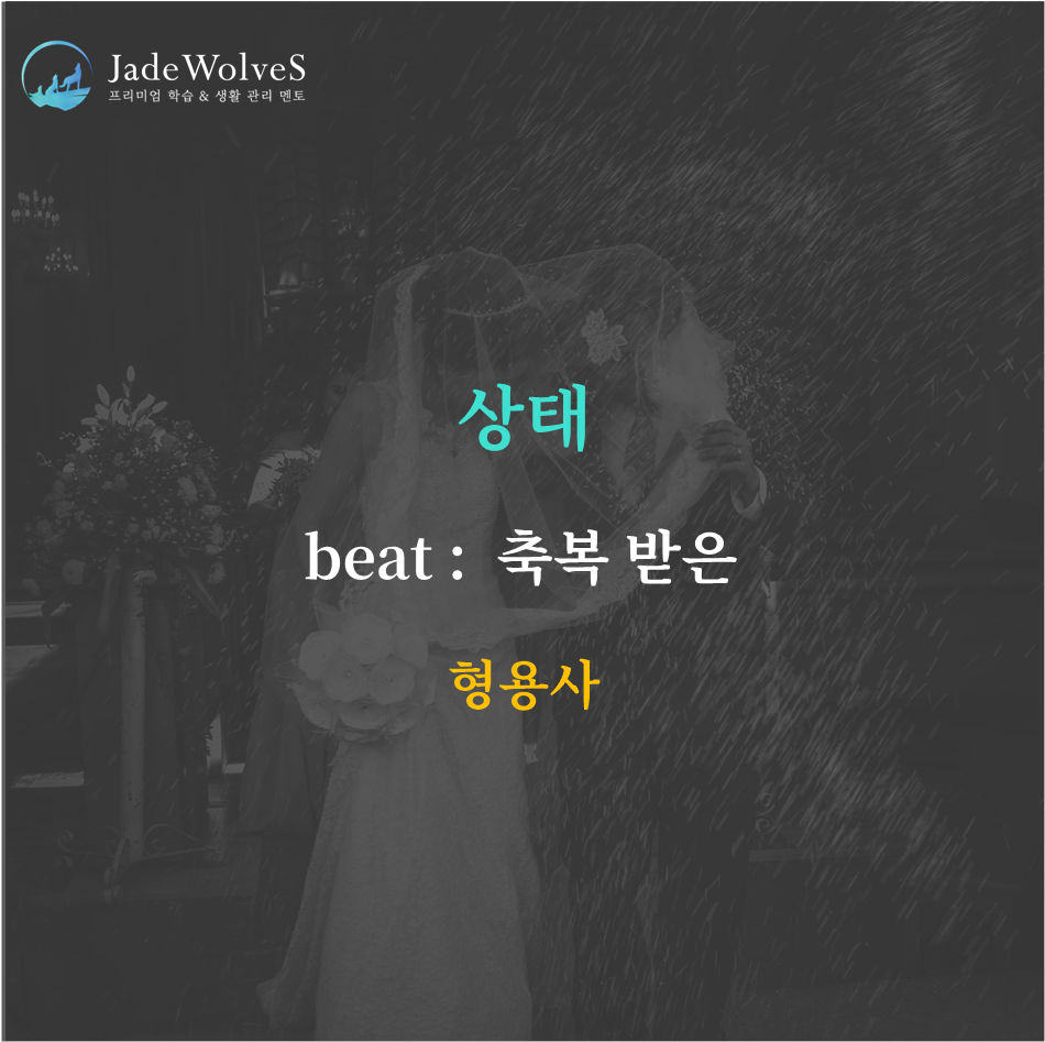 "beat : 축복 받은"이라는 의미로 상태를 나타냅니다.