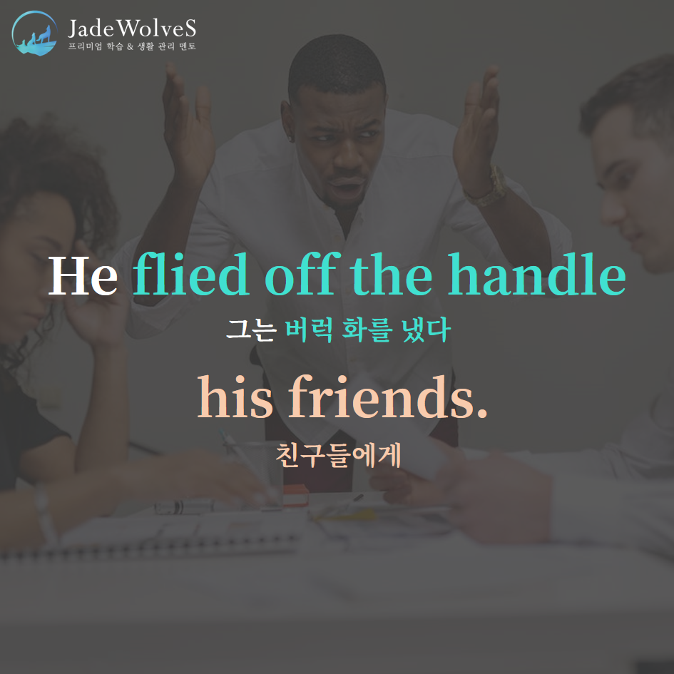 1) fly off the handle : "상황을 통제하기 어렵다"라고 해서 "버럭 화를 내다"라는 의미로 사용됩니다.