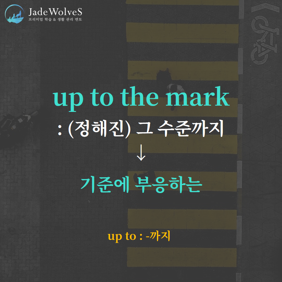 2) up to the mark : "(정해진)그 수준까지"라고 해서 "기준에 부응하는"이라는 의미로 사용됩니다.